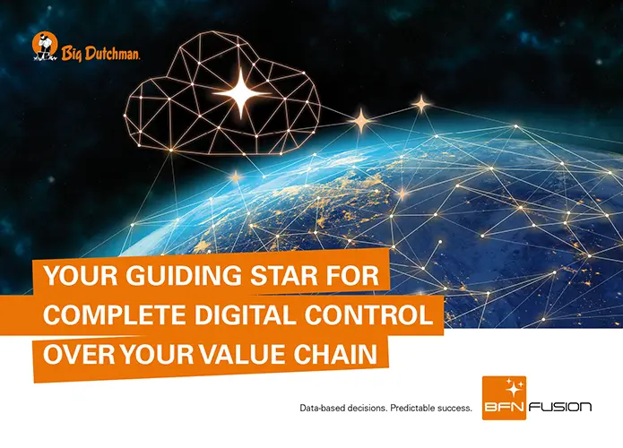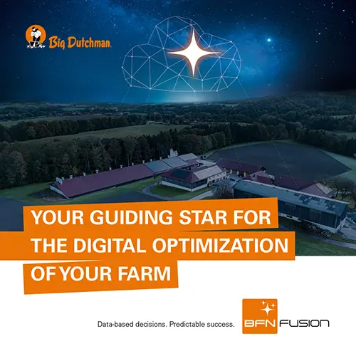 BFN Fusion is a modern digital service for data-optimized farming which helps you overcome today’s challenges in protein production. Whether your operation is poultry, egg or pig production, equipped by Big Dutchman or not: the BFN Fusion smart farming solution grows with you, whether you are an independent farmer, an integrator or an international livestock corporation.